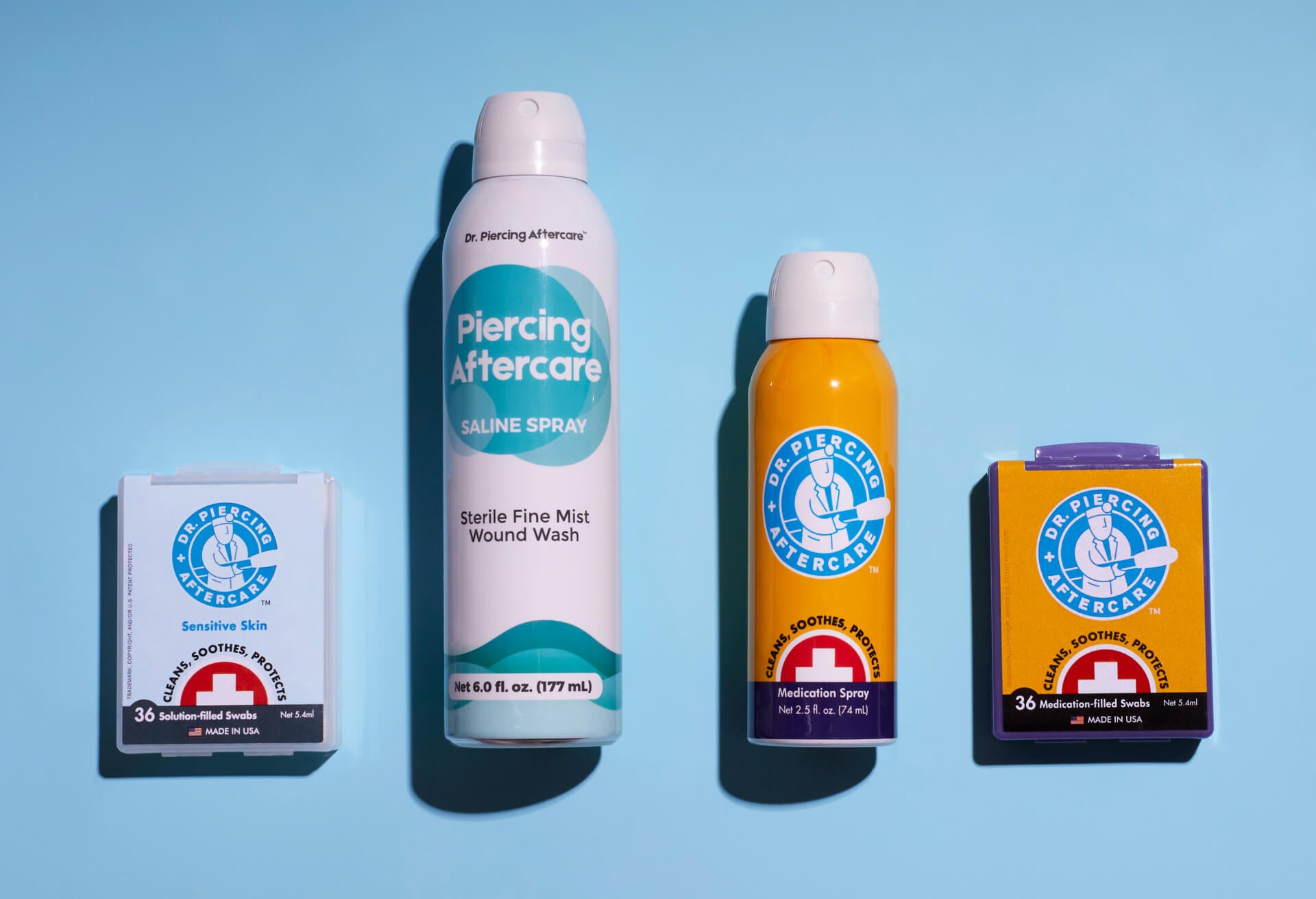 For nearly 20 years, Dr. Piercing Aftercare has been the only piercing aftercare brand to offer products with the combined power of an antimicrobial cleanser, a protective antiseptic, and a pain-relieving anesthetic, all in a safe, easy-to-use saline-based solution.